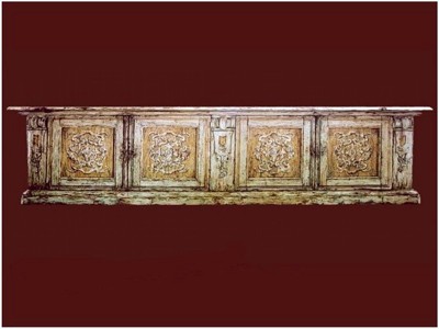 massello e dipinta a mano a tempera magra. Base cm 450 - profondità cm 65 - altezza cm 110.